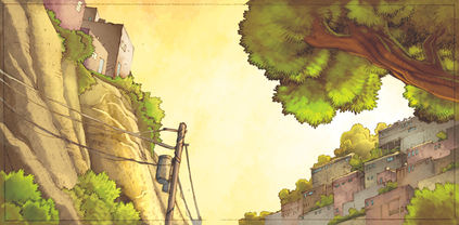 In 2013, I was involved in my first motion comic for Liam Sharp's Madefire, specifically Treatment with Neil Googe. My role was one of digital cleanup, creating a palette for the story and characters, and digitally pairing up the backgrounds from Neil's pencils. The images shown here are either backgrounds or assembled from the elements, which would move and show a parallax effect.